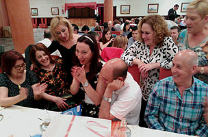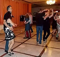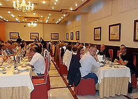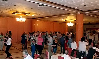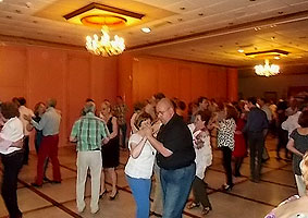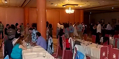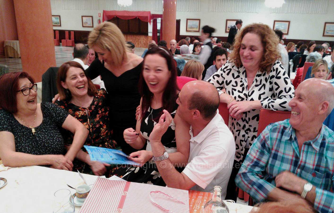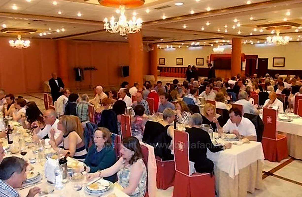 Las fotos que muestran UN DEDO al pasarles el puntero por encima pueden ampliarse. Haz CLIC sobre ellas y se abrirán en una nueva ventana. Bueno, vaciladas numéricas al margen, la cena de despedida del curso BAILAFACIL 2015/2016, celebrada este año en el hotel Begoña Park, fue también un gran éxito en lo que se refiere al resto de detalles: comida, música, baile, ambiente, etc. Para ser completamente sinceros, sí que hubo algunas pequeñas deficiencias en el servicio que tendremos en cuenta para la organización de futuros eventos pero en general todo salió estupendamente y los asistentes pudimos disfrutar de una opípara cena, acompañada de una sesión de baile más que satisfactoria, con el ambiente y la animación habituales en todos nuestros eventos. Mil gracias a todos los participantes por contribuir a ello.