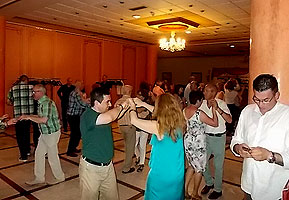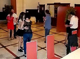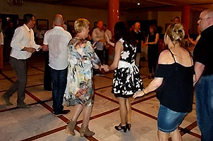 ¿Y qué os puedo contar de las más de 3 horas que duró la sesión de baile? Pues poca cosa. Lo habitual en todos nuestros saraos, que por lo visto no lo es tanto en los de otros. Música variada y de calidad que mantuvo la pista a tope toda la noche (a las 3 de la mañana, medio minuto antes de cerrar el chiringuito, todavía había más de 80 personas bailando las últimas piezas), mucha animación, un par de ruedas cubanas que fueron una risa (cualquier parecido con las que hacemos en clase es pura casualidad) y, en general, el fantástico y 'asqueroso' buen rollo de siempre. Nos encantaría montar de vez en cuando algún evento borde y desagradable, aunque solo fuera por variar, ¡pero no nos sale! En fin, y con esto y un bizcocho damos por finiquitado este curso hasta el 3 de octubre a las ocho.... que será cuando presumiblemente se pongan en marcha los primeros grupos del nuevo curso BAILAFACIL 2016/2017. Ha sido un placer trabajar con ustedes, señores (y señoras, of course), nos lo hemos pasado genial, pero ahora toca descansar y recargar las pilas, que estamos agotaos. ¡Feliz verano a todos! PD: Este pequeño vídeo-clip con los mejores momentos de la cena es el remate definitivo al curso. ¡Hasta octubre! Copyright