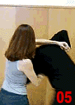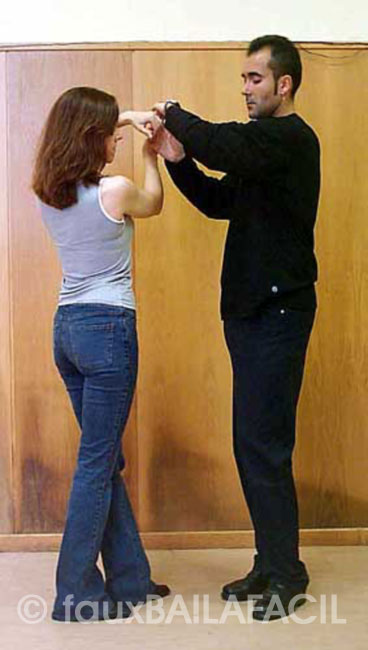 El procedimiento consiste en tirar de la chica con ambos brazos atrayéndola hacia uno de los costados, en un desplazamiento que sería diagonal con respecto a su posición de salida. Una vez que la chica empiece a moverse, basta con que el chico levante uno o ambos brazos para completar cualquiera de los tres enlaces. Con la chica desplazándose, todos los movimientos de brazos son mucho más sencillos de indicar y también es más fácil girar, así que todo son ventajas. Hasta alcanzar